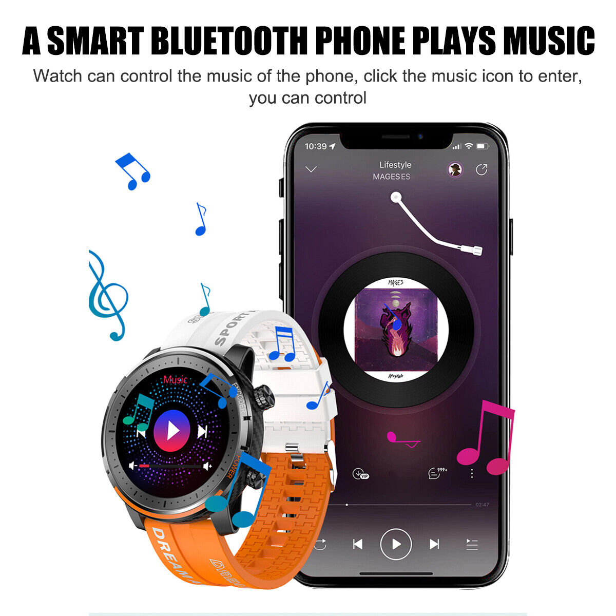 monitoring, mindfulness, Bluetooth music control, call reminder, SMS