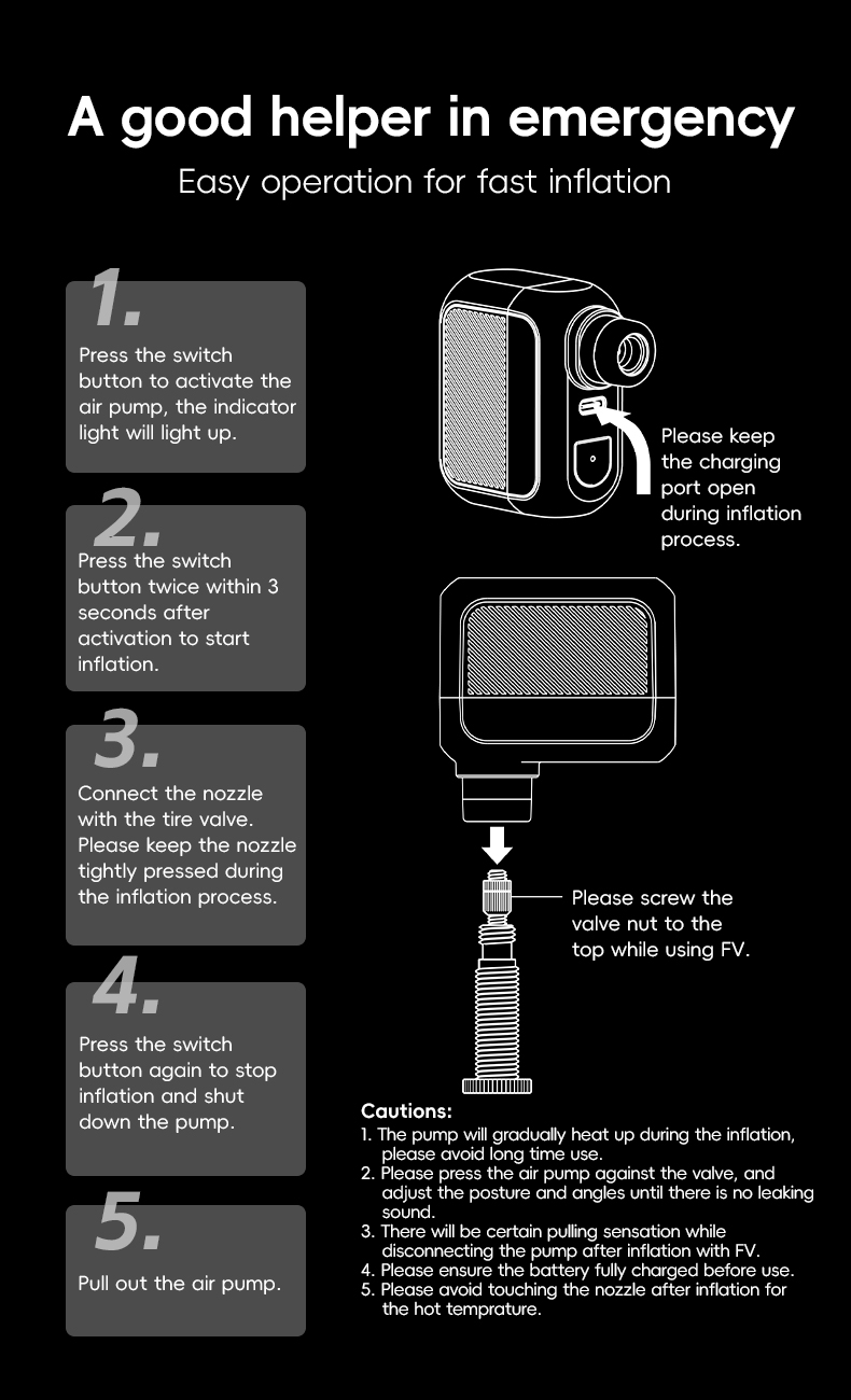 3.Simple operation, can quickly fill an empty tire in a short time.