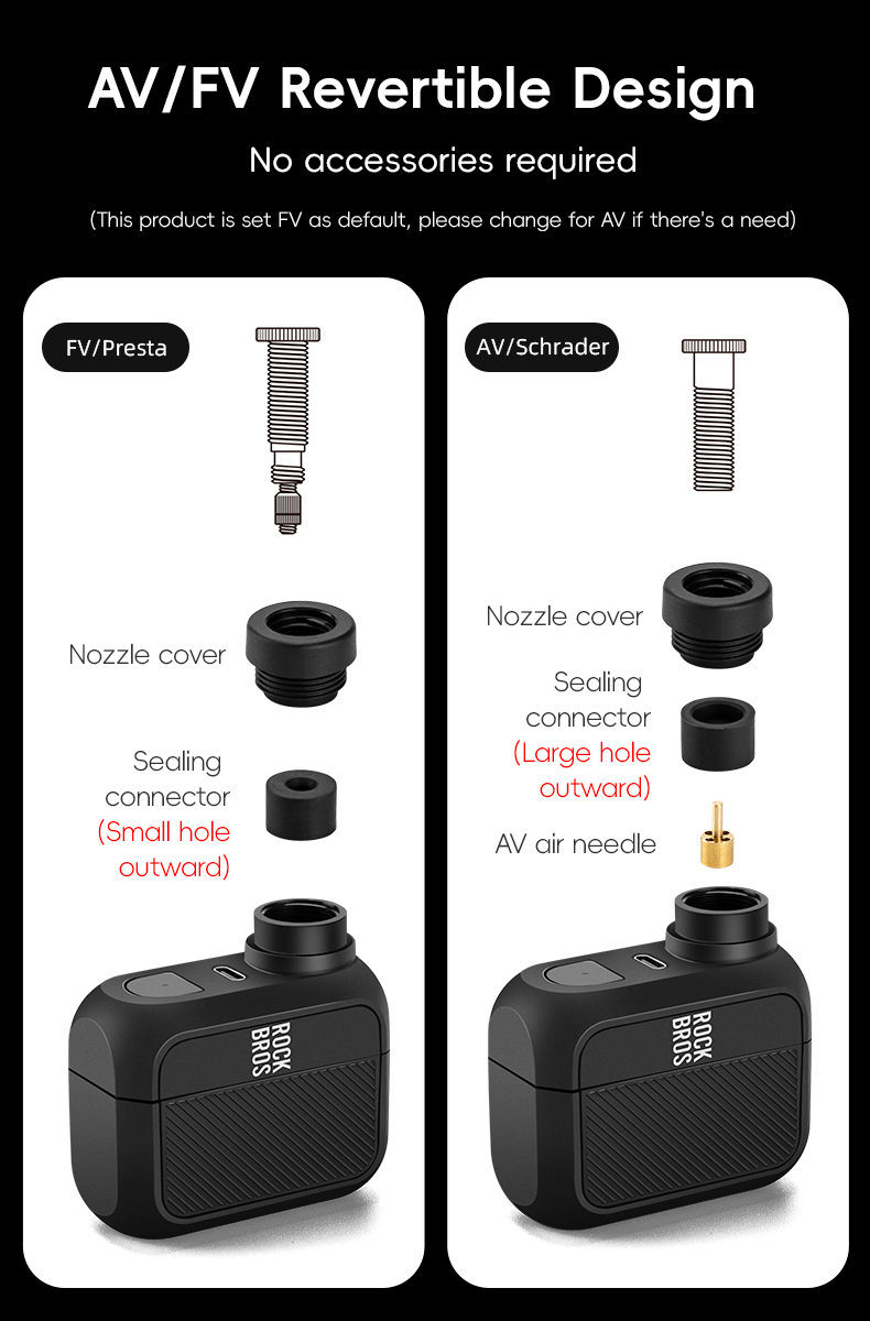 4.Quickly switch the air valve, suitable for both Schrader and Presta air valve.