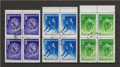 Russia 1957 Sc# 1910-12 set Ice Hockey World Championship blocks 4 NH CTO