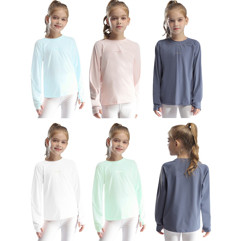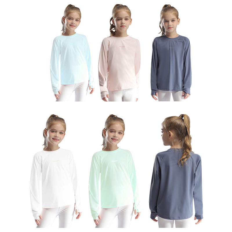 Long sleeve T-shirt with finger holes can hold the sleeves to support free movement, and bright colors make your child look energetic.