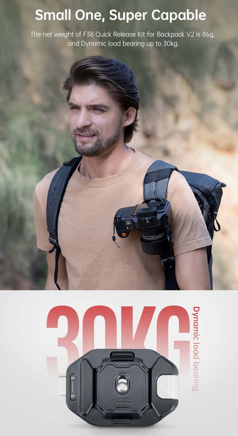 2. It is compatible with F38, PD, PGY, and other Arca Standard Square QR Plates. Specifically designed for backpack