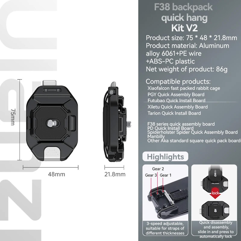 1. The Ulanzi Falcam F38 Quick Release Kit for Camera Backpack Strap Clip V2 is an upgraded version of the Falcam