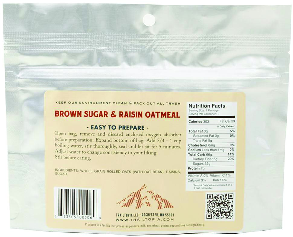 Optimize your outdoor nutrition with Trailtopia Oatmeal Brown Sugar Raisin - the ultimate trail food for a flavorful, energizing start to your adventure.