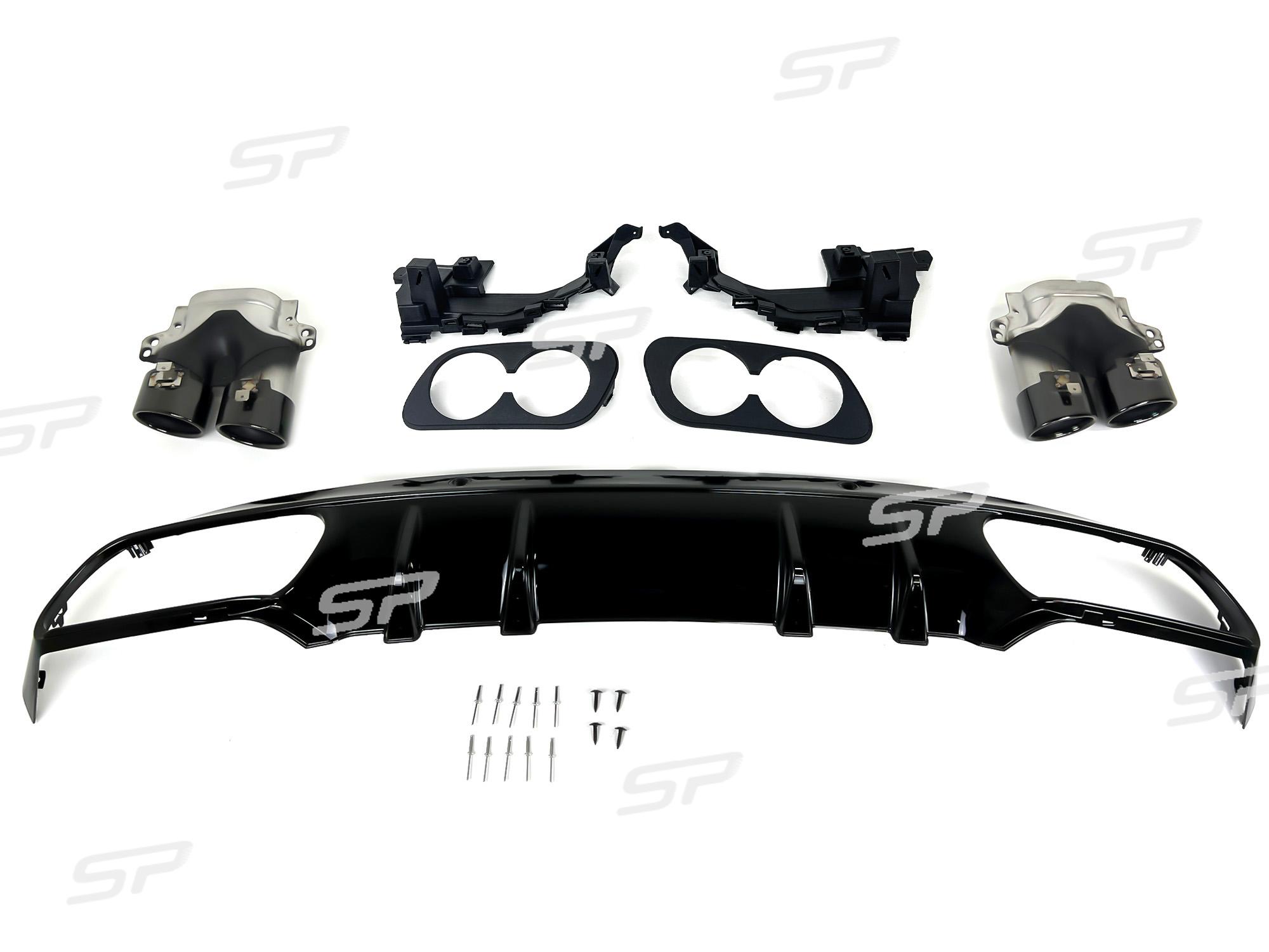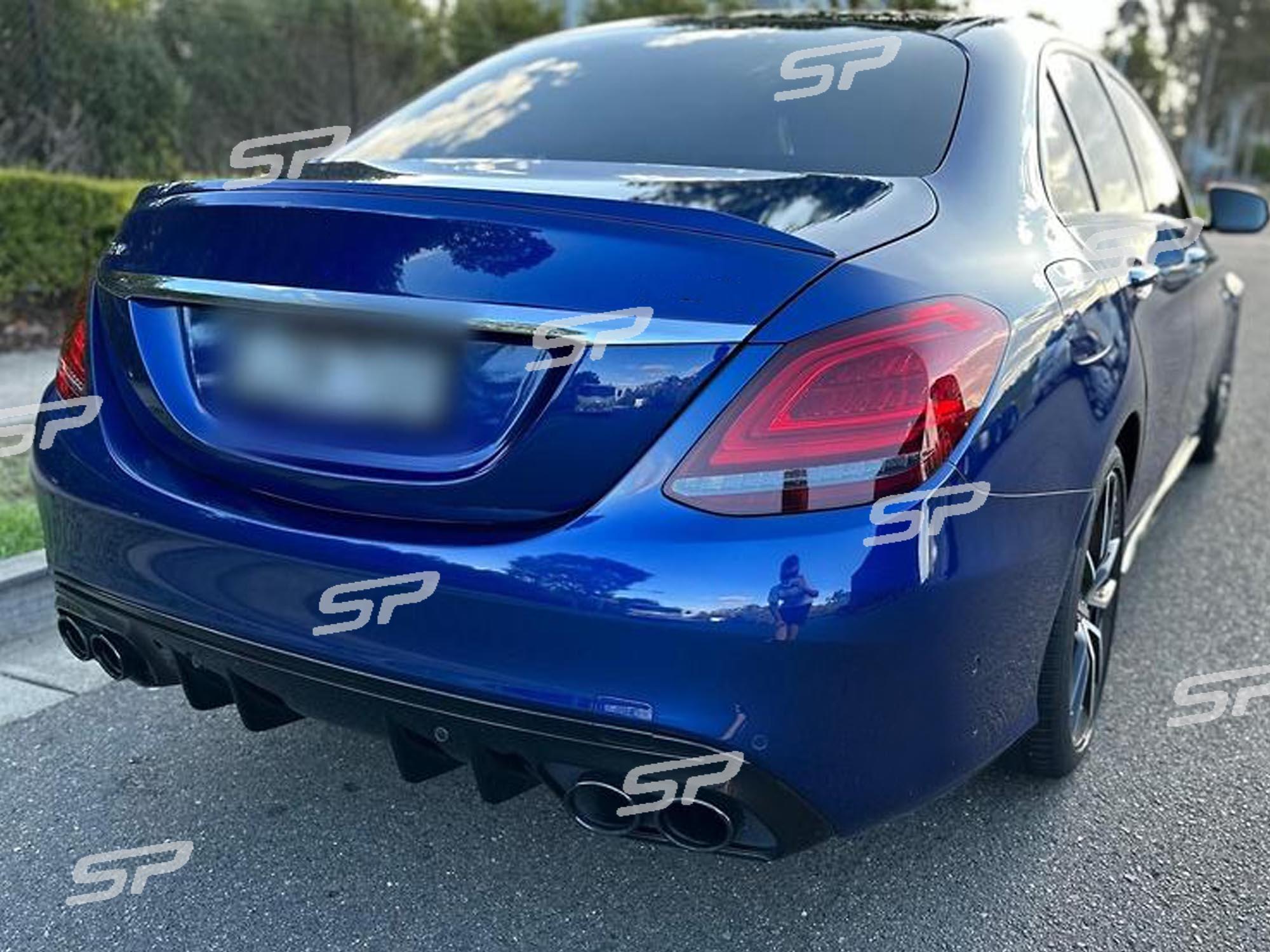 Enhance the sporty appeal of your Mercedes W205 C-Class Sedan with this gloss black rear diffuser and dual exhaust tips. Designed specifically for non-AMG models, this rear diffuser provides an aggressive, AMG-inspired look without the need to upgrade your entire bumper.