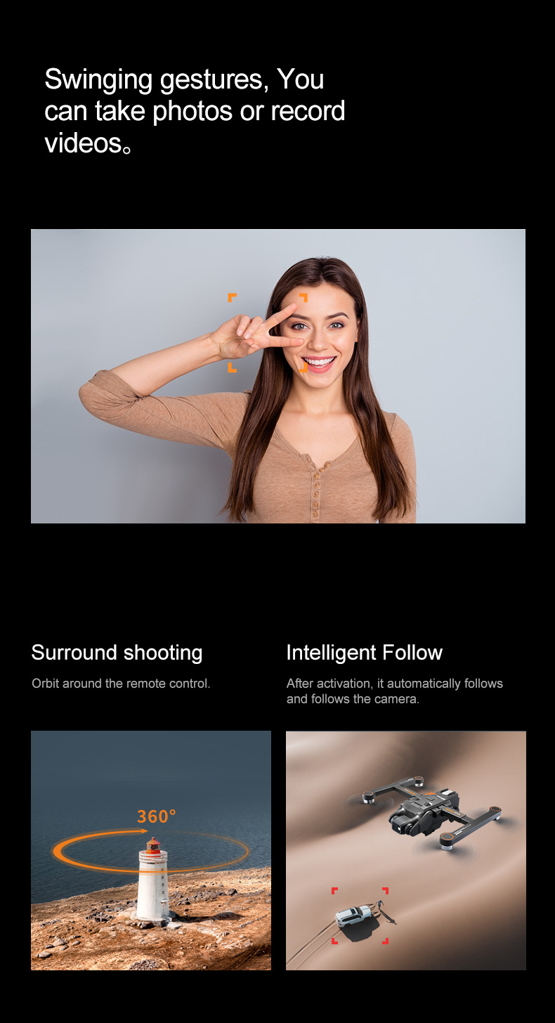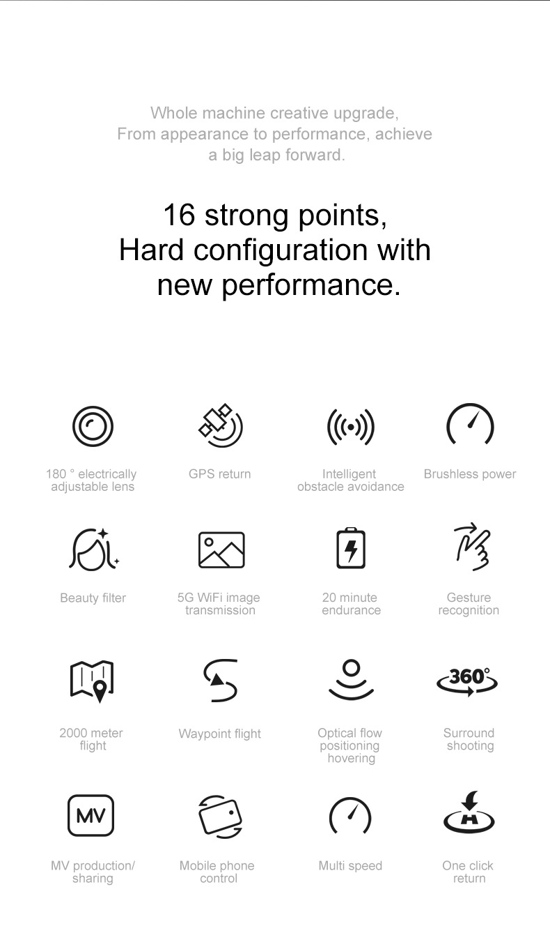 Product Details: Grey - Optical flow version: Product Description: Brushless motor + optical flow dual camera + four side obstacle avoidance Product color: Gray Product size :20*14*9cm Camera adjustment: electric adjustment Remote receiver frequency :2.4G Number of channels :4 channels 6 axis gyroscope Optical flow plate: optical flow fixed point Age :14+ Body battery :3.7V 1800 mah lithium Motor model :1503 brushless motor Charging time: about 100 minutes Remote control mode: left hand throttle right hand direction Charging method :USB cable charging (adapter needs to be purchased separately) Fast/Slow: Fast/slow Single battery flight time: about 15 minutes Remote control distance: about 100 meters Remote control battery :3*5 battery (self-provided) Lens Angle: electric adjustment 180° Return distance: about 40 meters Image transmission signal :WiFi transmission (2.4G) 1. 4K HD WIFI is placed on the front lens, and the bottom HD lens can switch the camera Angle with optical flow, and the steering gear head can increase the stability design to make the photos clearer 2. Optical flow positioning, custom route. You can draw a picture of how you want to fly on the APP 3. Long life 3.7V 1800mah, the life time reaches about 15 minutes, 4. Functions: up/down, front/back, left/right turn, side flight, one-key take-off/landing, headless mode, optical flow positioning mode, WiFi FPV dual lens switching function, lens electric adjustment function 180°, tumbling, trajectory flight, one-key backward, (four infrared obstacle avoidance, can encounter obstacles without crashing into obstacles)... 5. Brushless motor provides more power and longer service life The package includes: Drone *1 Remote control *1 Battery *1/2/3 USB cable *1 Fan blade *4 Screwdriver *1 Instructions *1 APP manual *1 Black -GPS version: Product Description: Brushless motor +GPS+ dual camera + four side obstacle avoidance Product color: Black Product size :20*14*9 CM Camera adjustment: electric adjustment Remote receiver frequency :2.4G Number of channels :4 channels 6 axis gyroscope GPS version: Optical flow fixed point +GPS positioning Age :14+ Body battery :7.4V1600 mah lithium battery Motor model :1503 brushless motor Charging time: about 120 minutes Remote control mode: left hand throttle right hand direction Charging method :USB cable charging (adapter needs to be purchased separately) Fast/Slow: Fast/slow Single battery flight time: about 20 minutes Remote control distance: about 600 meters Remote control battery: Built-in 3.7V500 mah lithium battery Lens Angle: electric adjustment 180° Return distance: about 300 meters Image transmission signal :WiFi transmission (5G) 5G optical flow GPS folding drone with dual camera WIFI professional aerial camera: 1. 4K HD WIFI is placed on the front lens, and the bottom HD lens can switch the camera Angle with optical flow, and the steering gear head can increase the stability design to make the photos clearer 2. Accurate positioning, with GPS accurate positioning, can achieve one-button return, no signal return, low power return. 3. Ultra-long battery life 7.4V 1600mah, the battery life reaches about 20 minutes, 4. Customize your route. You can draw a picture of how you want to fly on the APP 5. Lens adjustment 180°, intelligent follow, surround flight, palm control, map real-time positioning drone, out-of-control map planning route, APP phone control, one-button return, headless mode, rise and fall, forward and backward, left and right side flight, can switch optical flow /GPS, gesture photography, optical flow positioning, brushless motor, long endurance, Four-sided infrared obstacle avoidance (only in optical flow mode can avoid obstacles, GPS mode can not use obstacle avoidance function) 6. Brushless motor provides more power and longer service life The package includes: Drone *1 Remote control *1 Battery *1/2/3 USB cable *1 Fan blade *4 Screwdriver *1 Instructions *1 APP manual *1