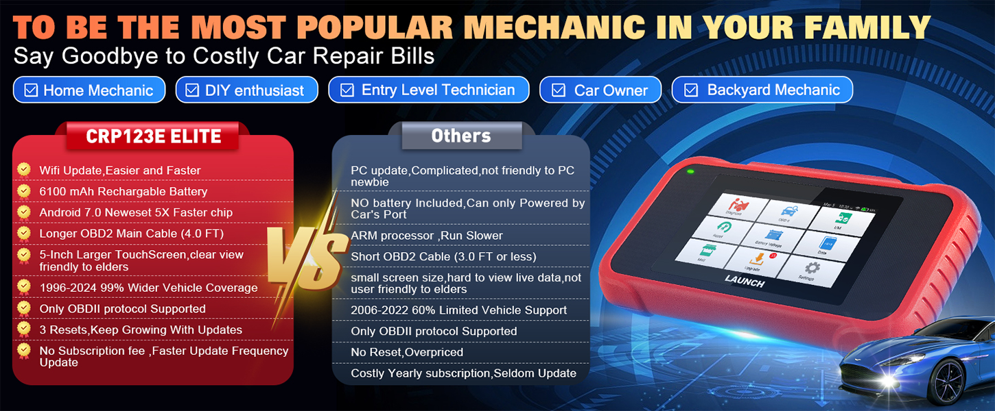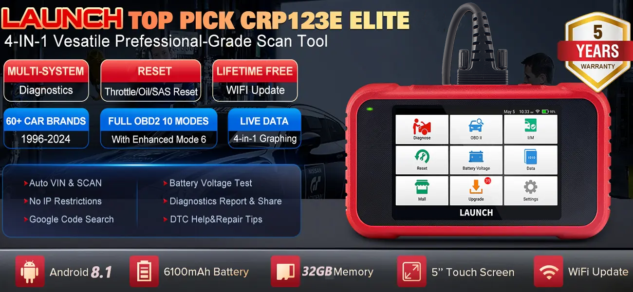 4 Systemdiagnose mit eingehender Inspektion von Motor/ABS/SRS (AIRBAG)/Getriebesystemen für eine Zustandsdiagnose, Abrufen von ECU-Informationen, Lesen/Löschen von Codes, Ausschalten von Warnleuchten. Wie LAUNCH CRP129E.