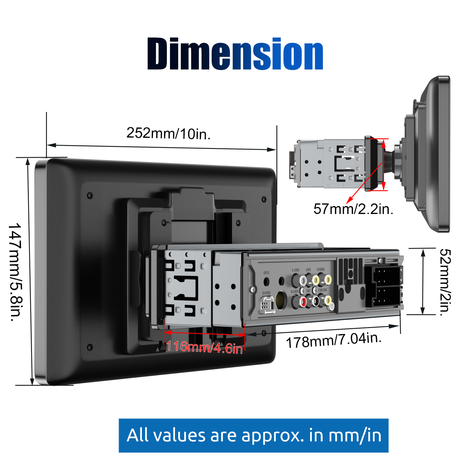 【9-Inch Single DIN Touchscreen Car Radio】9-inch 1120 x 480 HD IPS capacitive screen 2.5D designed. Universal 1 DIN standard installation size 7"×2" / 178*50MM to fit most vehicles. Our 1 din stereo is equipped with a 9-inch IPS 2.5 HD capacitive touch screen and it makes more sensitive and accurate. 3 ways to adjust screen to provide comfort viewing angle for driver and passager, up and down, forward and backward(30°), left and right(30°)