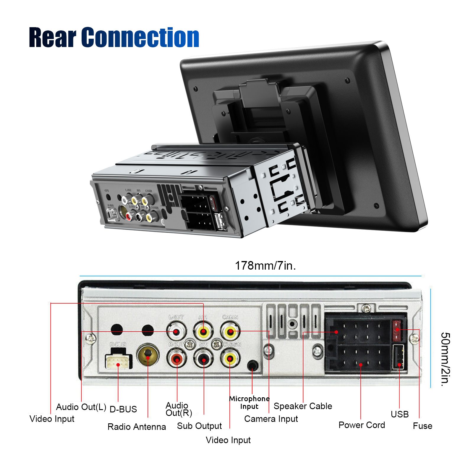【Reversing Image Function】After connected with the rear camera, you can see the image on the radio screen through the rear view camera when reversing your car. The 7-inch touch screen will automatically display the reverse image once you pull in reverse. Make your daily reversing safer.