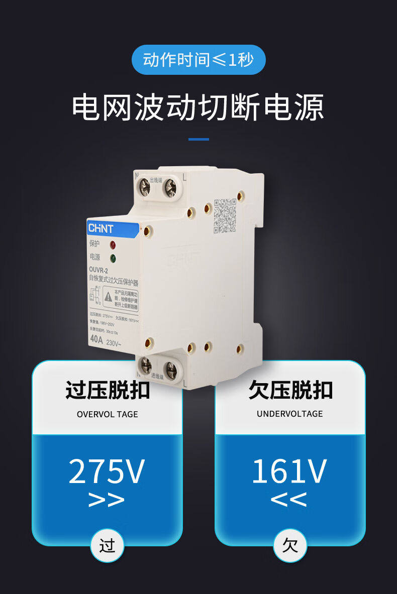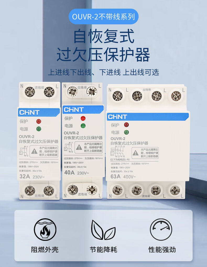 Chint OUVR-2 Self Resetting Undervoltage Protector Incoming Line Is Below Brand
