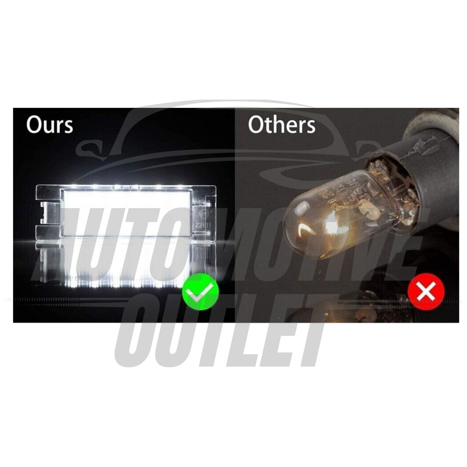 Pair of LED number plate lights. These plug-and-play replacements produce a bright white light for improved visibility and a modern look.
