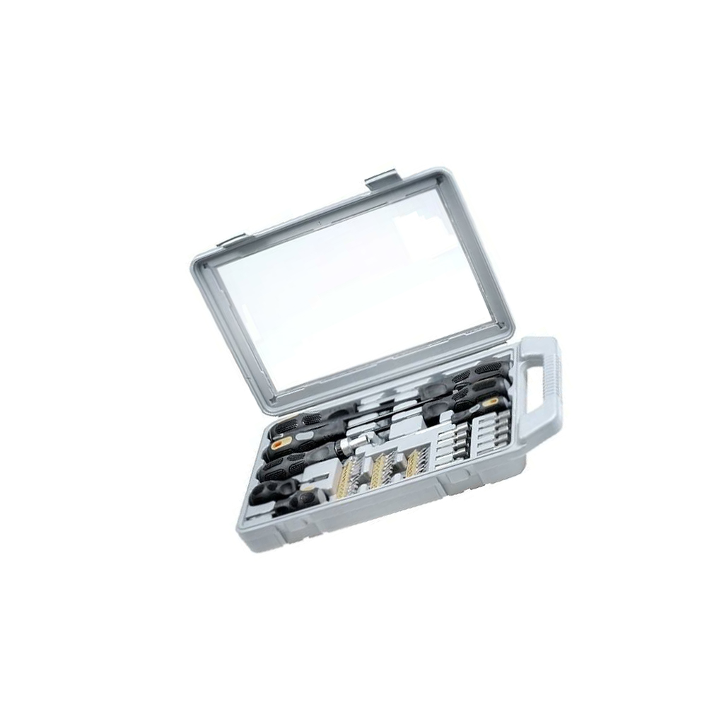 | | | | HA-1045 Schraubendreher Anz.Stk: 45 GOLDTOOL  HA-1045 Schraubendreher Anz.Stk: 45 GOLDTOOL Hersteller: GOLDTOOL Werkzeugset-Typ: Schraubendreher Anzahl in einer Packung: 45 Werkzeugset enthält: austauschbare Bit- und Steckschlüsseleinsätze Werkzeugset enthält: Koffer Werkzeugset enthält: Magnet mit Teleskoparm mit einer Gesamtlänge von: 170-610 mm Werkzeugset enthält: Schraubendreher Werkzeugset enthält: Schraubendrehergriff mit Ratsche Material: Chrom-Vanadium-Stahl Ausführung der Lötspitze: flach Ausführung der Lötspitze: Phillips Ausführung der Lötspitze: Pozidriv® Ausführung der Lötspitze: Sechskant Ausführung der Lötspitze: Sechskant-Steckaufsatz Ausführung der Lötspitze: Torx® Größe der Lötspitze: #1 Größe der Lötspitze: #2 Größe der Lötspitze: 6,0x1,0mm