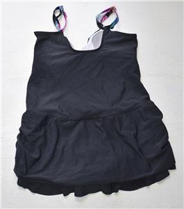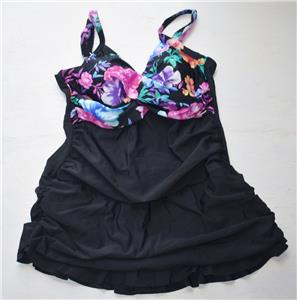 Make the most of your prettiest curves. And hide what you don't want to show. Simply wear this plus-size swimsuit. It looks like two separate pieces: blouson tank and swim skirt. But it's actually a streamlined one-piece, made to instantly slim and trim.