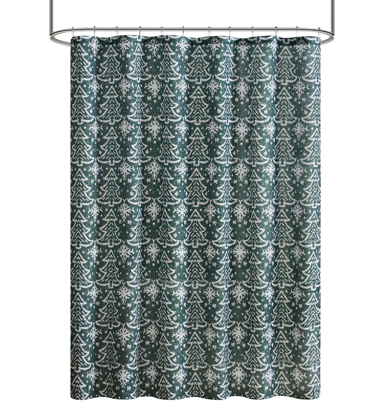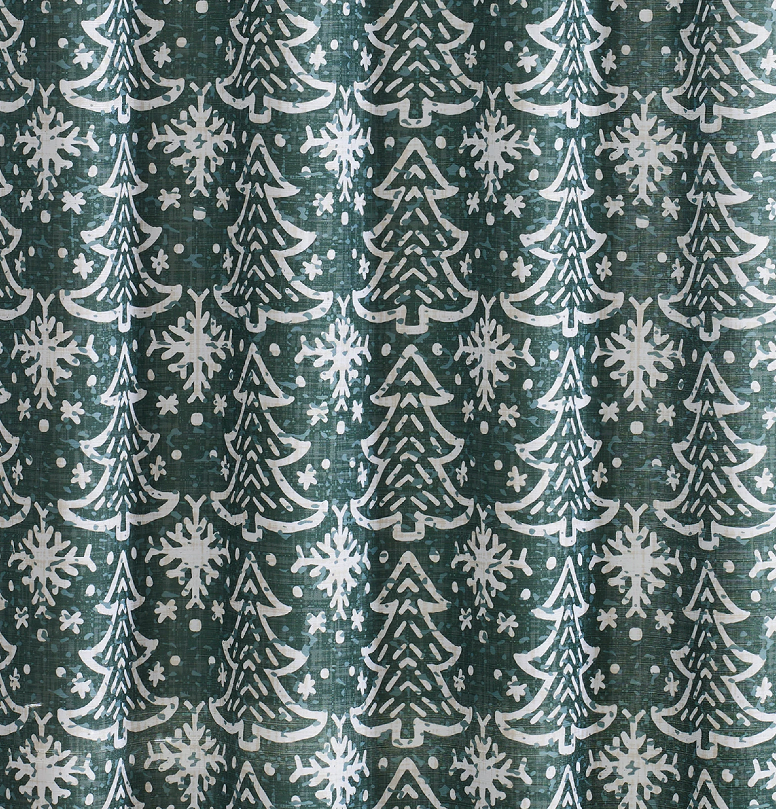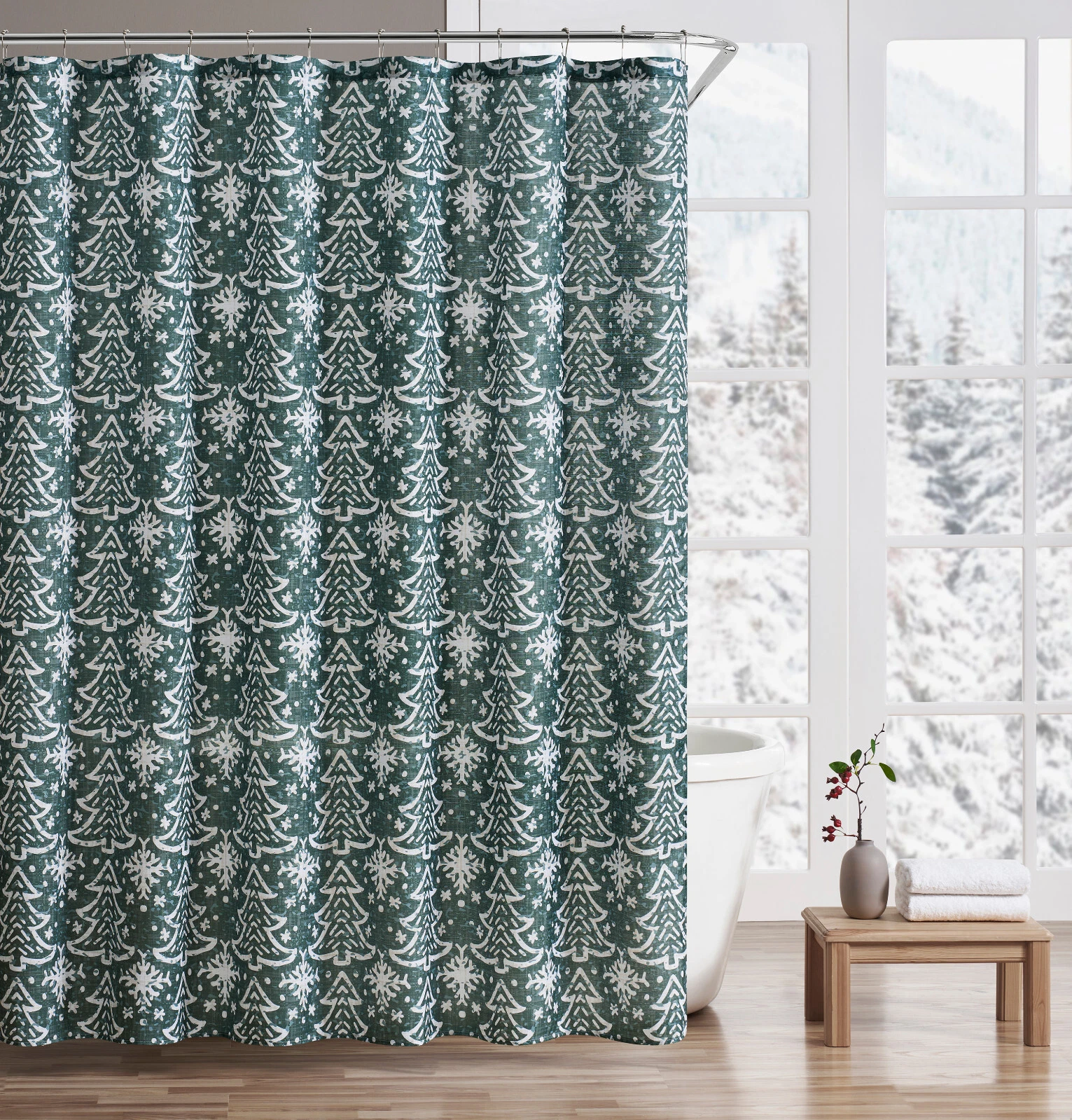 Kate Aurora Tis The Season Christmas Trees & Snowflakes Fabric Shower Curtain