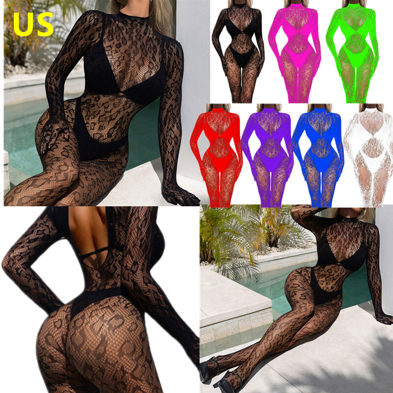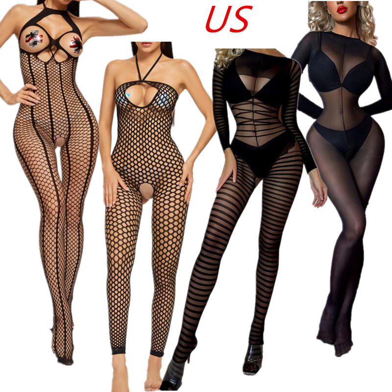 See through fishnet front and open butt design.