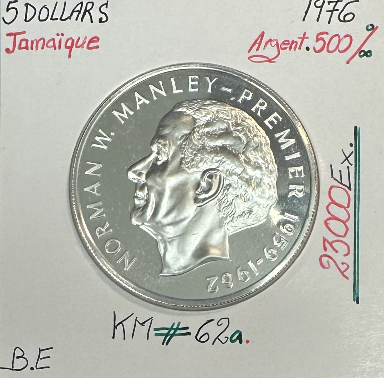 JAMAIQUE - 5 DOLLARS 1976 - Pièce de Monnaie en ARGENT // BE