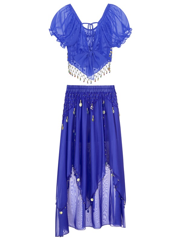 2-piece set is perfect for dancing party and stage performance, paring hip scarf and veil to complete a professional dancer look.