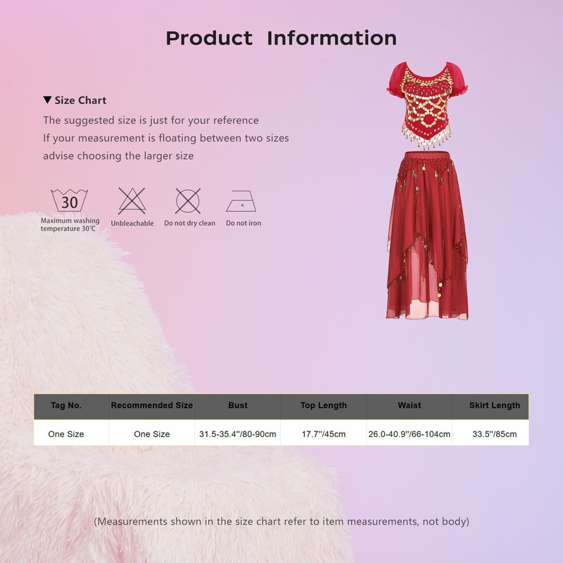 Suitable belly dance, theme party, masquerade, dancing party, dance class, dance competition or stage performance.Size Chart
