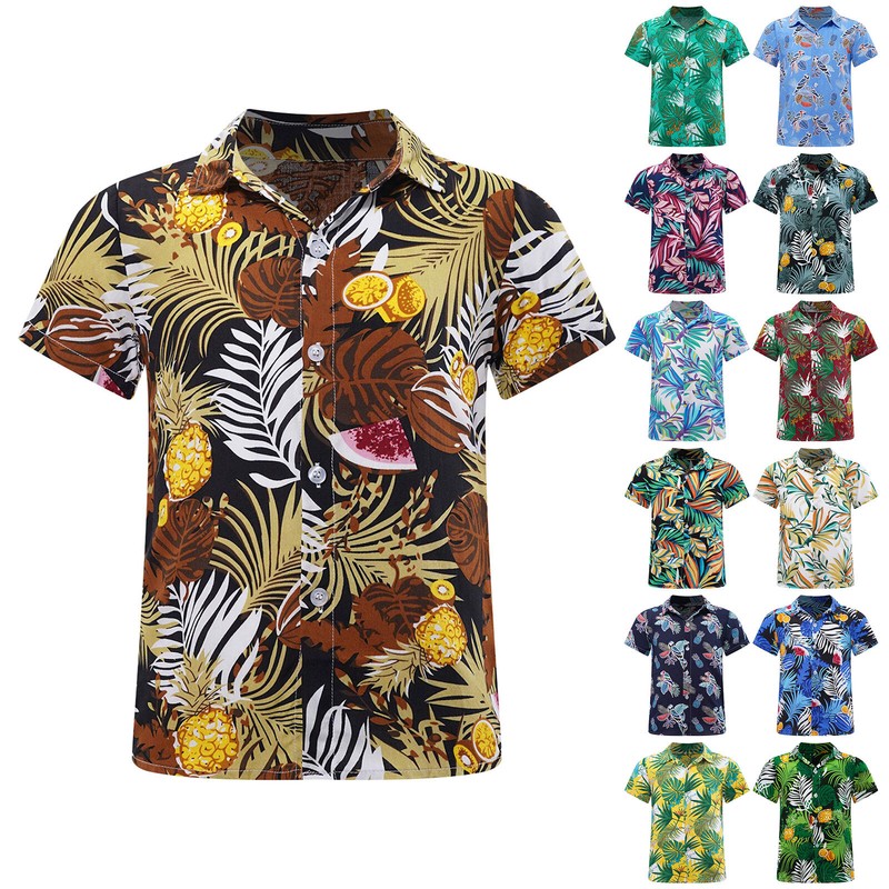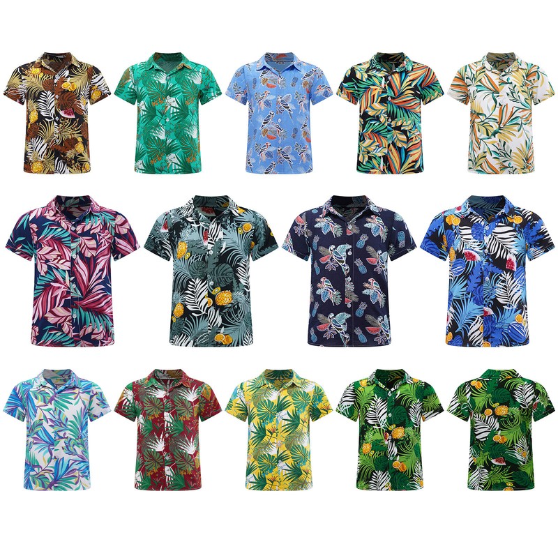 Kids Boys Shirts Turn-Down Collar Blouse Party Top Hawaii Hawaiian Luau Casual