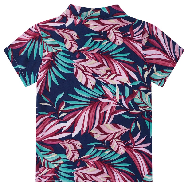 Boy’s short sleeve shirt is designed with tropical graphic print, turn-down collar and button closure for easy wearing.