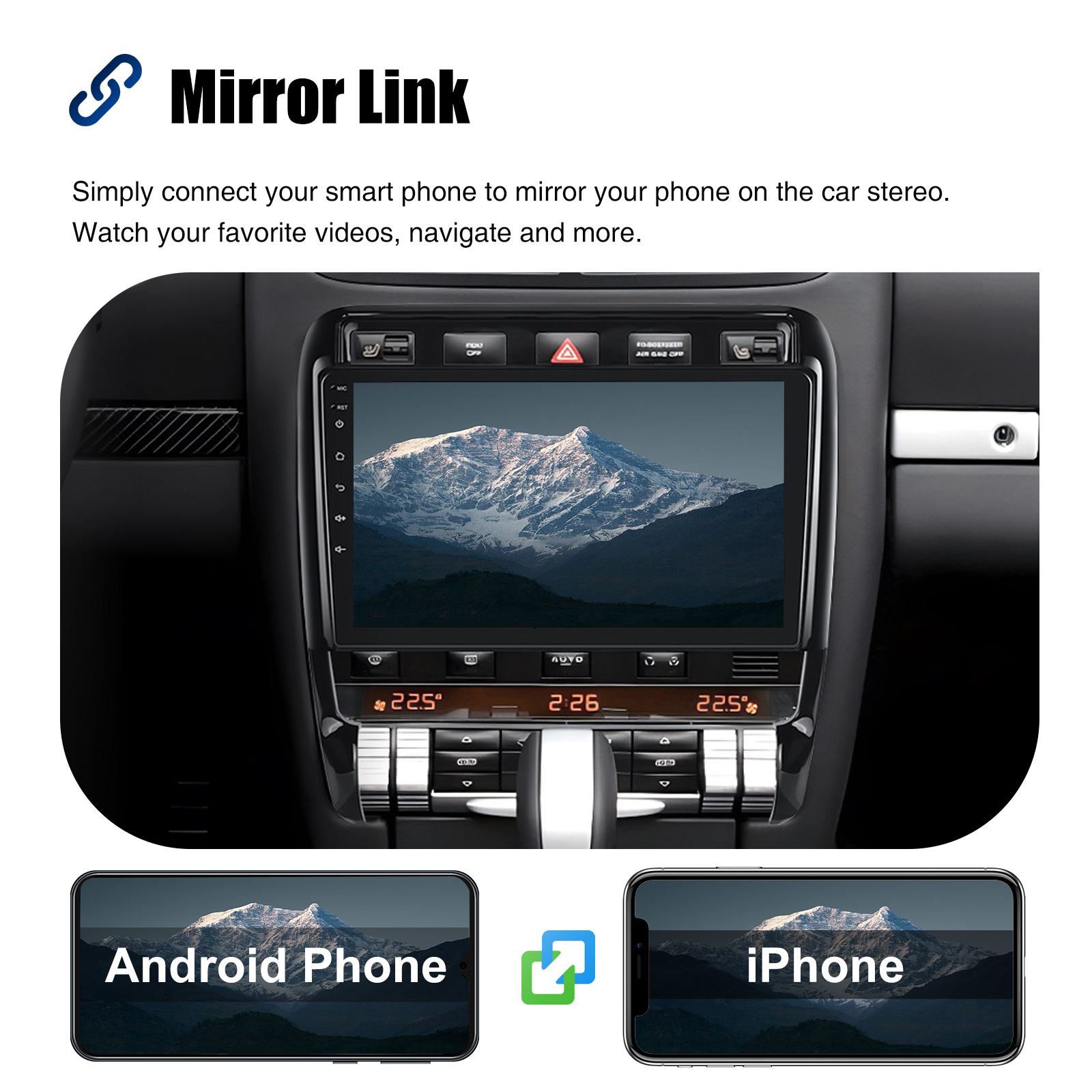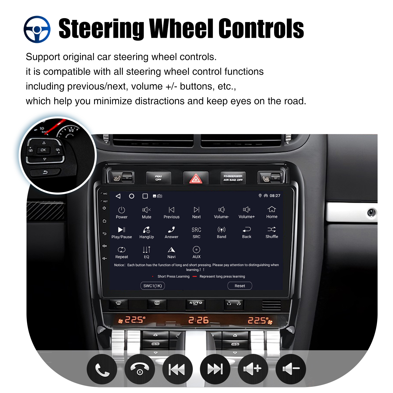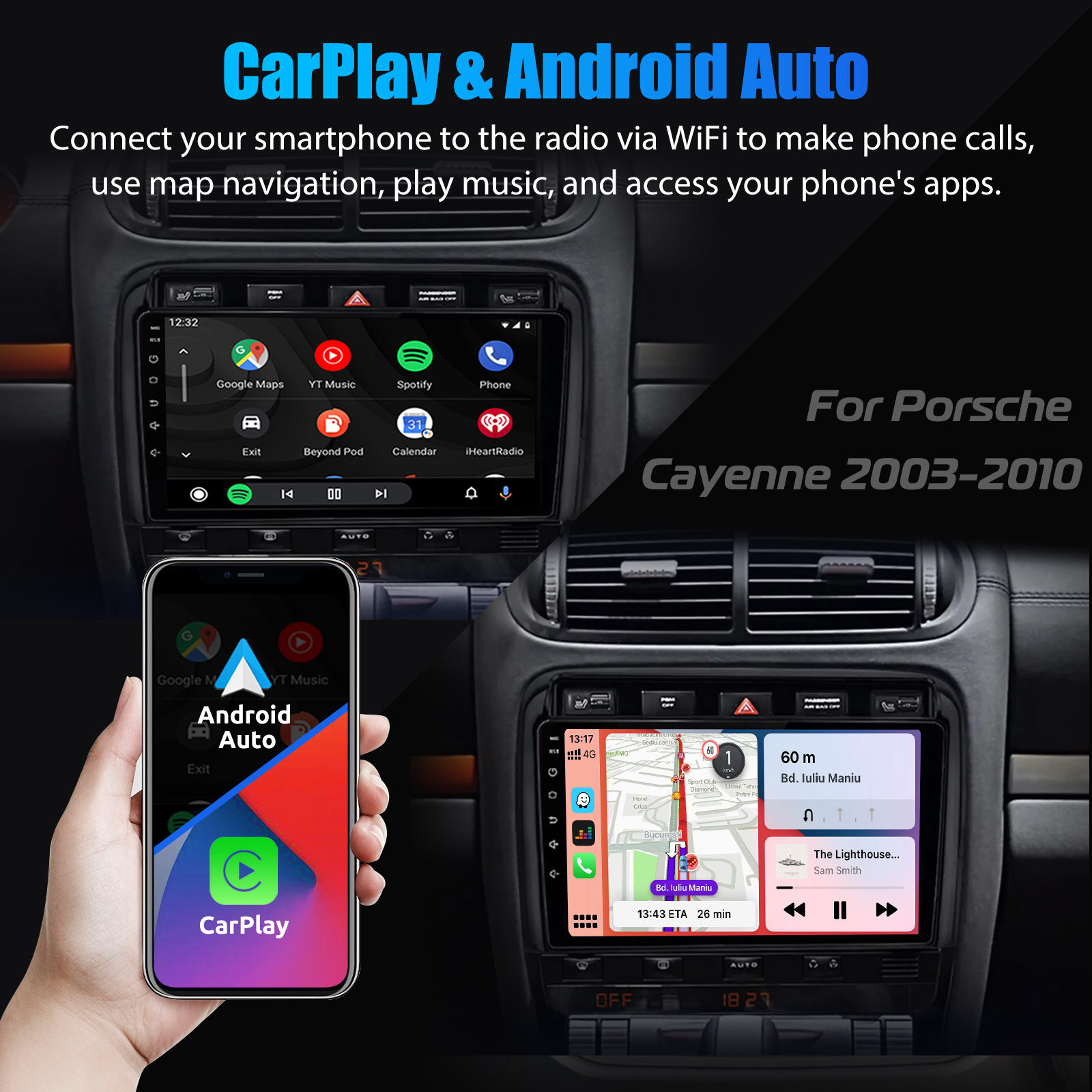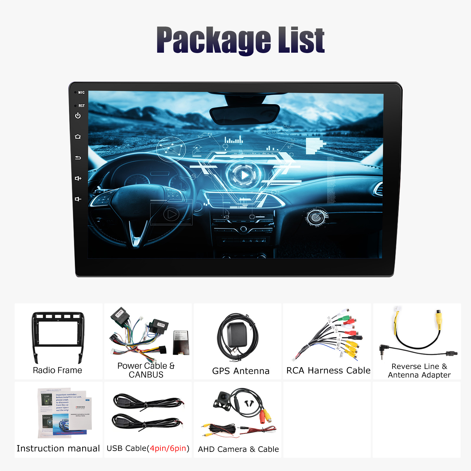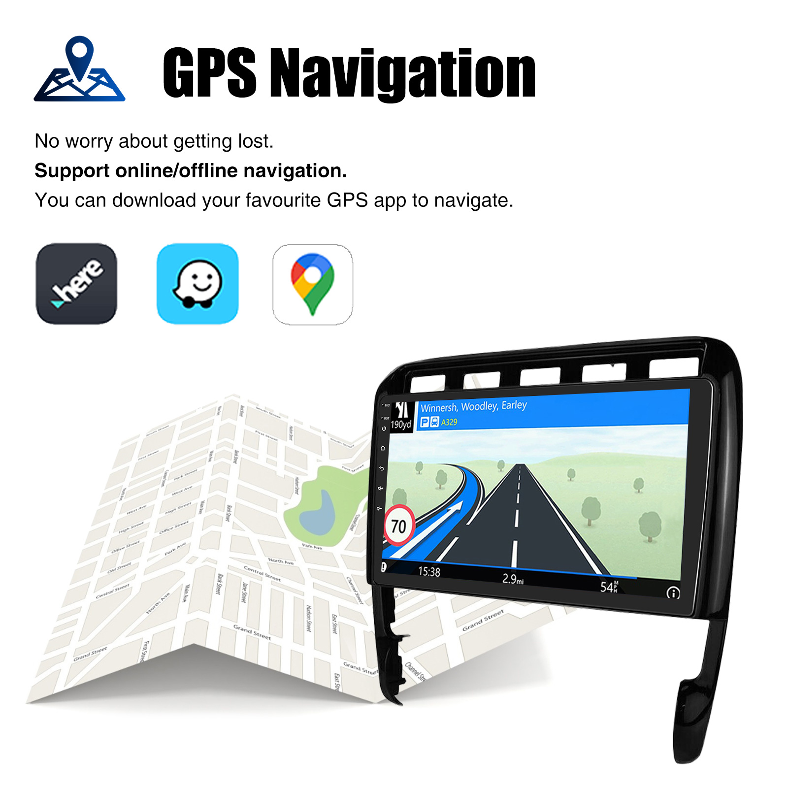 10.1 Inch Android 13 Car Radio For Porsche Cayenne 9PA: The Android car radio with 9" 1280* 720 HD IPS capacitive touchscreen, 4GB RAM and 64GB ROM allows you to download your favorite apps and videos, so driving is no longer boring. No extra frame, no cable change, plug and play. It comes with Canbus and supports most of the original functions: steering wheel control, reverse signals and reading original computer data, etc.