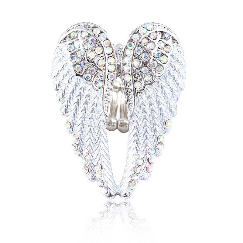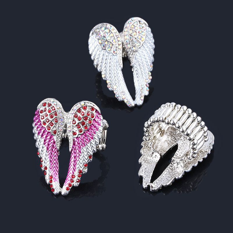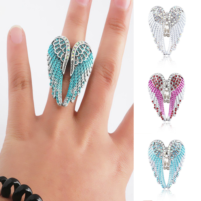 Fashion Charm Angel Wings Adjustable Ring Women Men's Jewelry Christmas Gift Antique Silver Color Rhinestone Ring