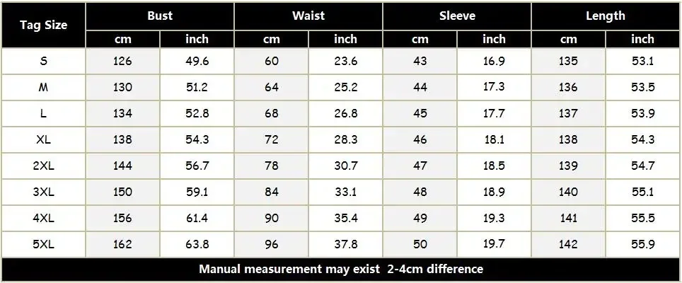 Female DressSize: S,M,L,XL,2XL,3XL,4XL,5XL