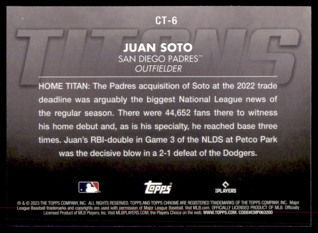 2023 Topps Chrome Titans Great! Juan Soto San Diego Padres #CT-6 Insert,