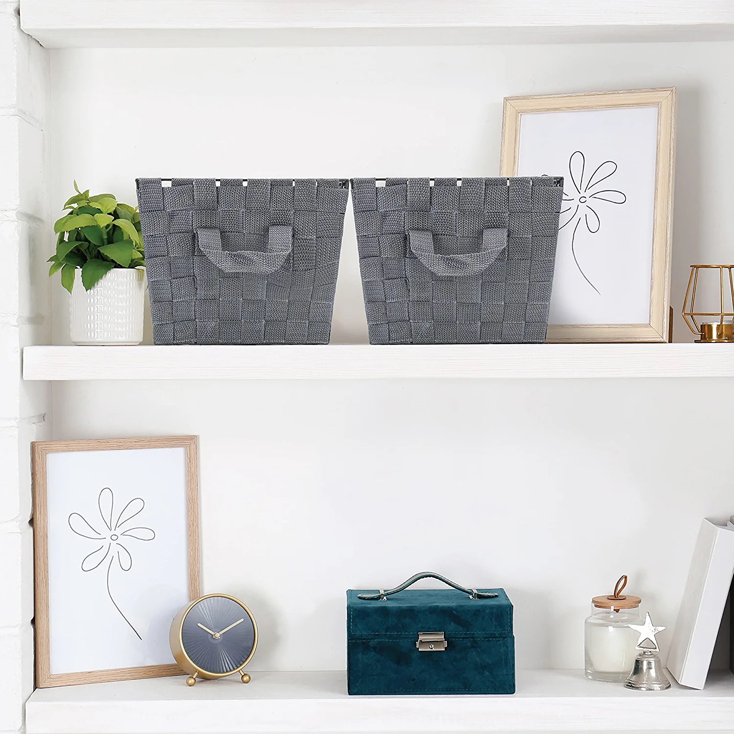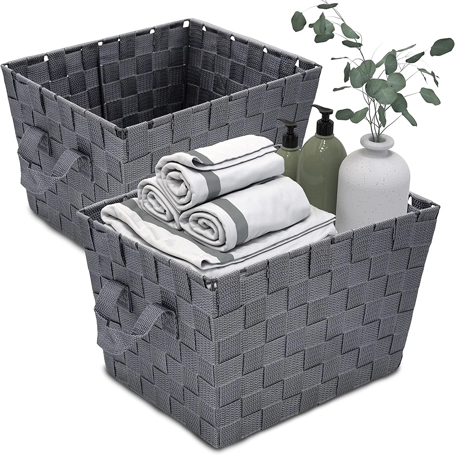 Brookstone 2 Pack Woven Storage Baskets with Handles, Dark Gray