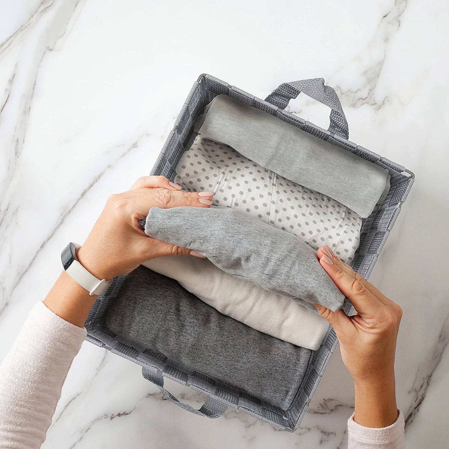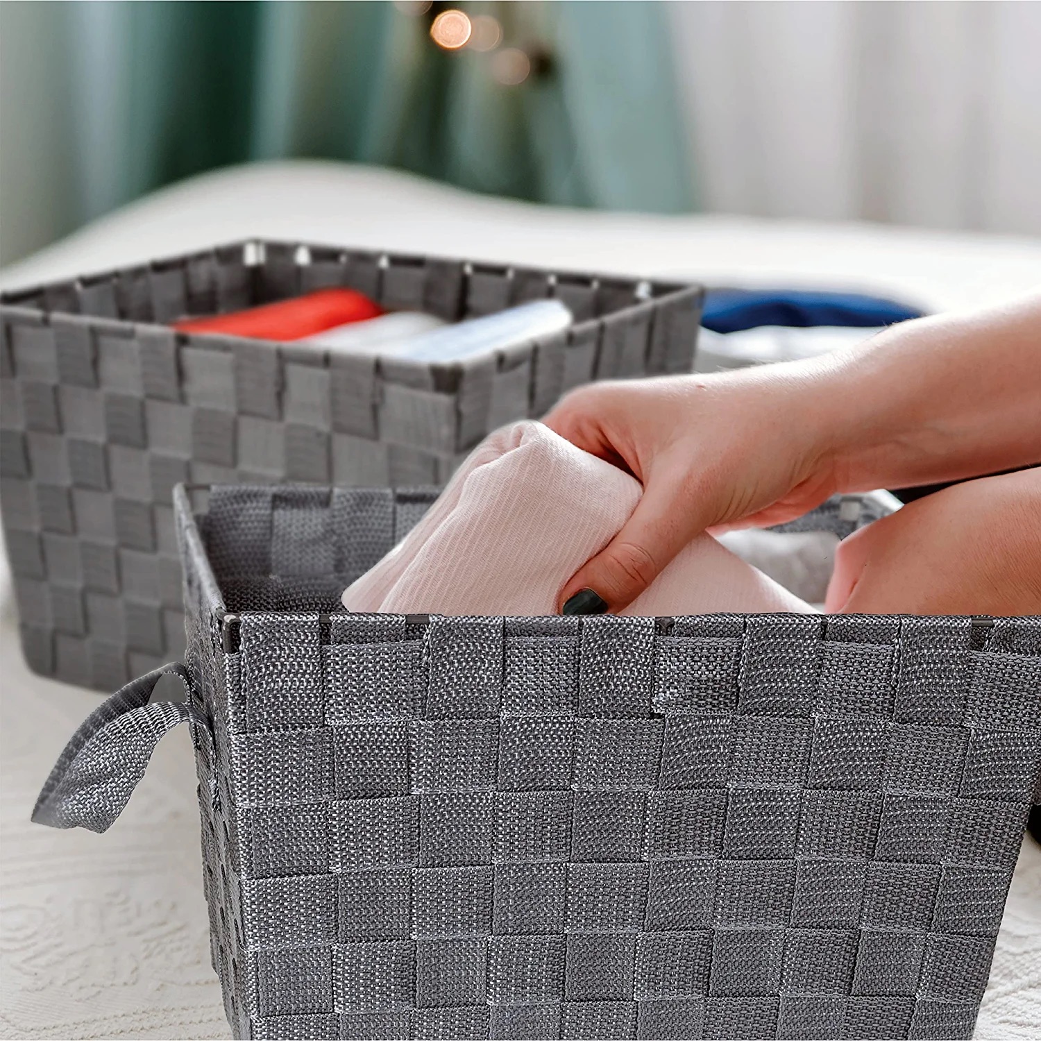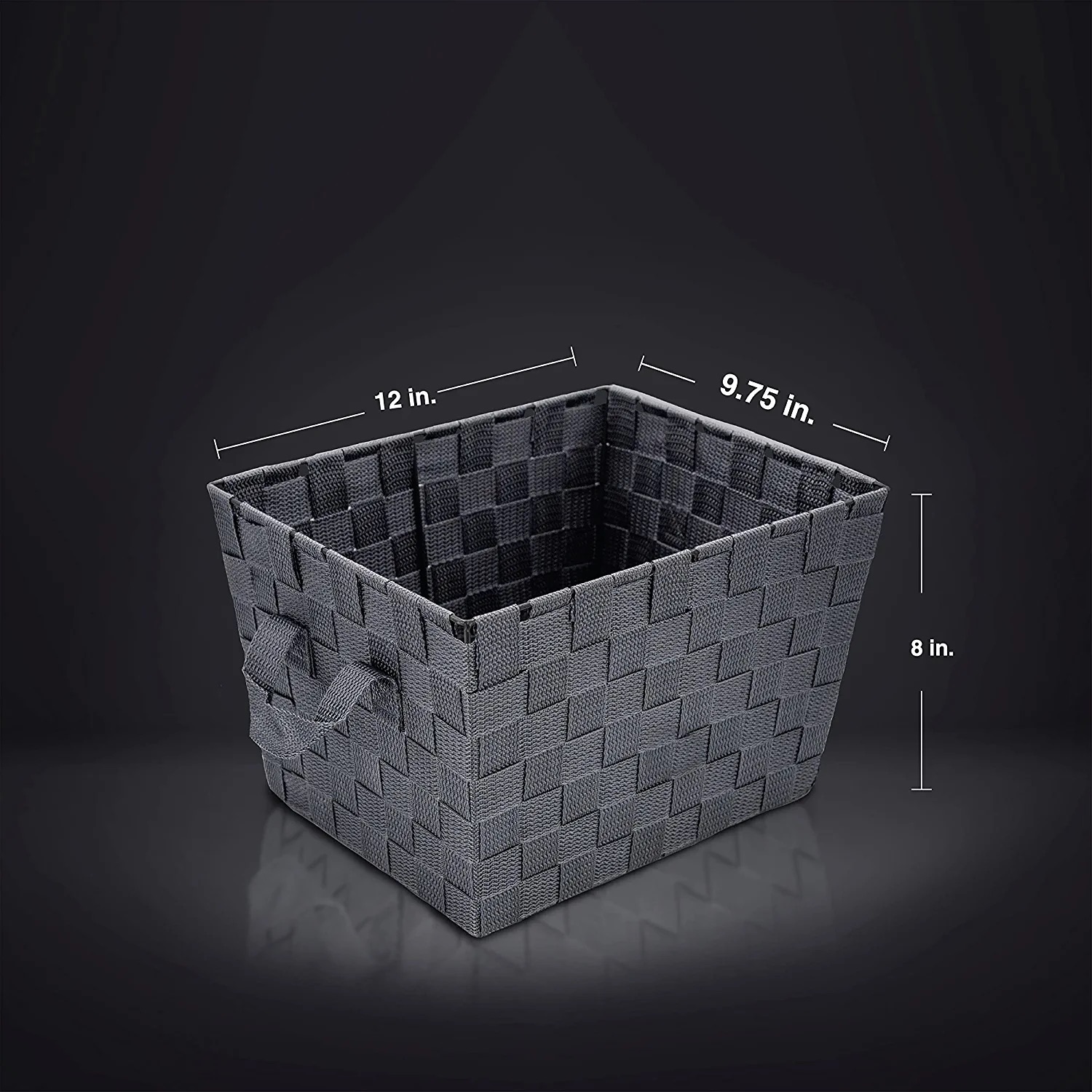 Nobody wants an ugly, bulky plastic container in their carpeted living room or bedroom. It simply doesnt fit or complement your home design, and its a pain to carry around the house. This is what inspired Brookstone''s interior design team to create our woven, fabric basket of neutral, soothing colors designed to match the dcor of any room. Just picture storing matching blankets beside your couch, adding to the cozy feel of your living room. The natural fibers make it a robust, durable long-lasting storage solution for your home. The reinforced handles and firm, yet soft texture make carrying heavy loads a breeze. Roll up some hand towels in a basket and plop it on the sink for when guests visit. Or arrange a medley of chip bags, granola bars, and other snacks for when its time for an overdue study break. No matter how varied the occasion, this pair of woven rectangular storage baskets is ready to roll with you.