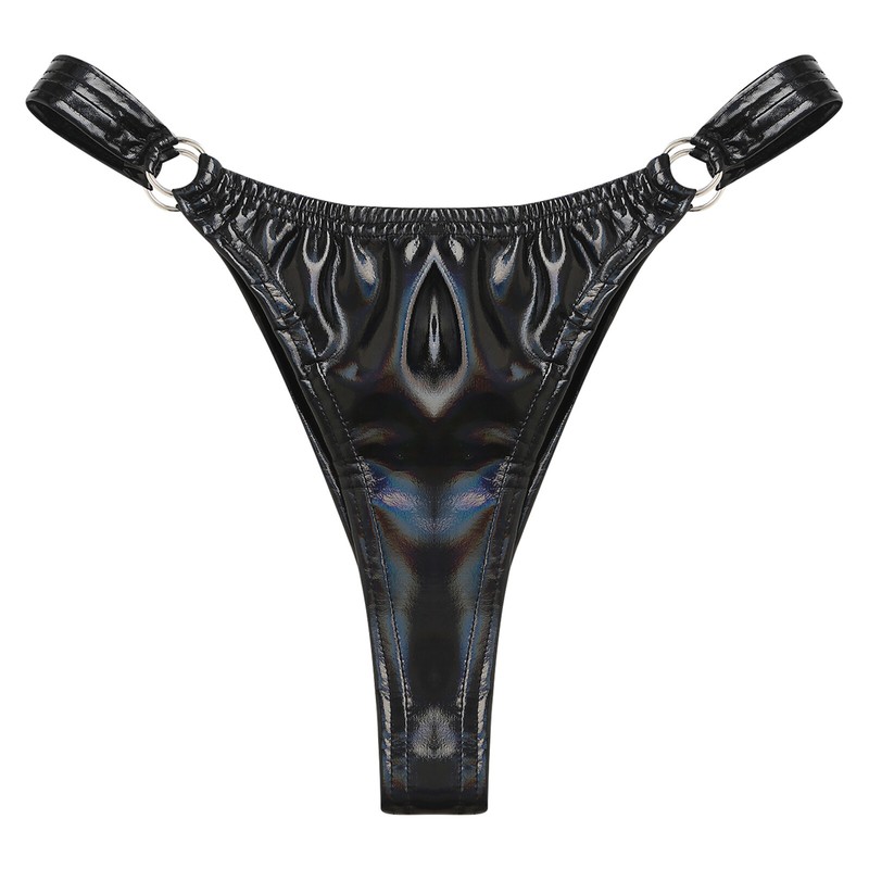 Underwear for women is designed with elastic waistband, O-ring, T-back, glossy surface and solid color, making you sexy and spicy.