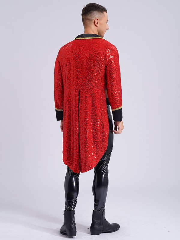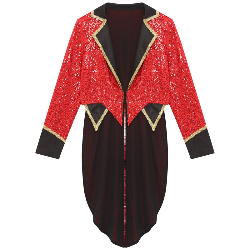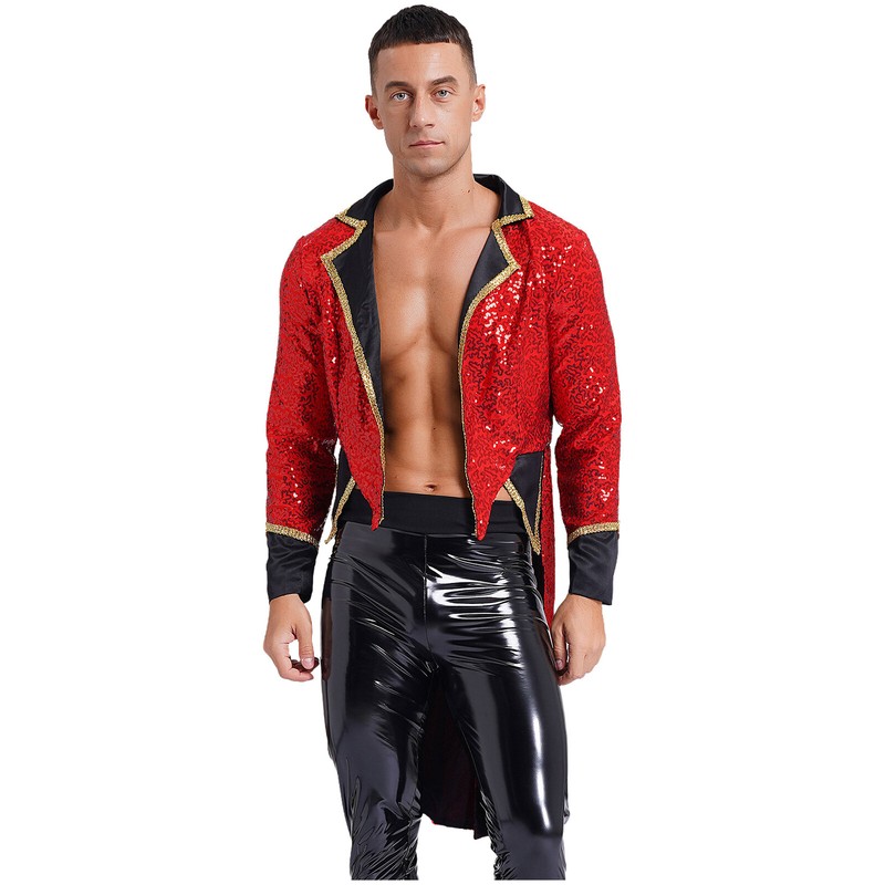 Ringmaster outerwear in bright colors brings a funny and wacky look, pairing with ruffle collar shirt, long pants would be perfect.