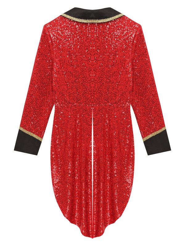 Designed with notch lapel, long sleeve, open front, shiny sequin and gold trims, shiny sequin layer and smooth lining.