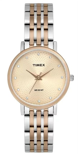 Rose Dial.Quartz movement.30mm round shaped case.Two tone 7.5 inch bracelet.Mineral glass lens.Two-tone Case.