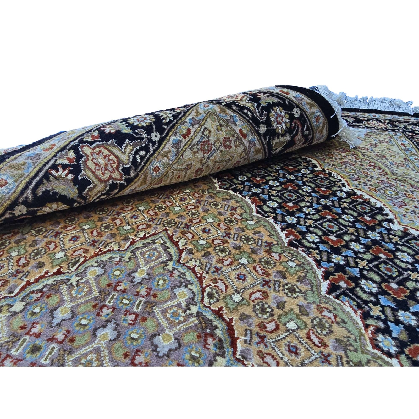 Al Ahmedani Linen Black Tabrez Mahi Double Knot Wool Rectangle Hand Knotted Area Rug Wonderful Design Home Decor Indoor Carpet (6.5 x 4.1)'. For the perfect combination of unique, beautiful style and high-quality durability, the attention to detail on these beautiful contemporary rugs is noticed as soon as you lay eyes on the carpet. The rug appears dull when viewed from one side, and shiny from the other side. Please view the picture at the bottom to see the bright side of the rug. This rug can help brighten up a room if you do not get much sunlight. Simply put the bright side facing the seating area and it will make the room appear surprisingly bright. Wonderful design with multi-color, easily compatible with most home decor. Blended color schemes match well with all styles of furniture and art. Give your home an elegant touch with this area rug. Great for any decor, it adds texture to the floor and complements any decor. 100% Genuine Hand Knotted-Rug not hand tufted.