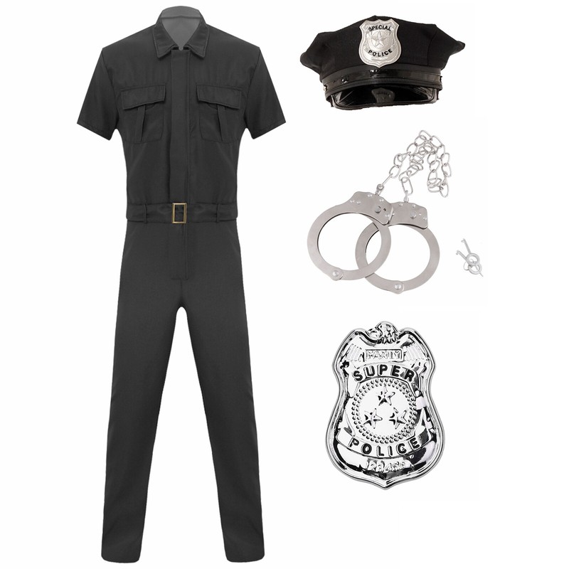 Set Include: 1Pc Jumpsuit with belt, 1Pc Badge, 1Pc Hat, 1 Pair Cuffs