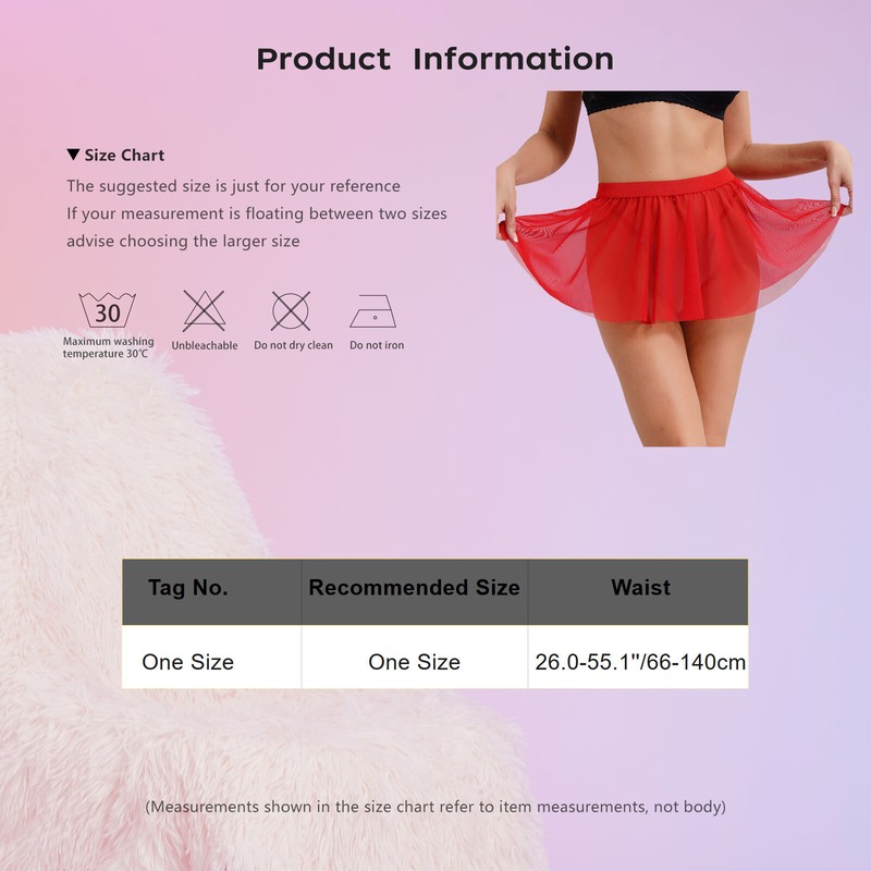 Sheer mesh ruffled skirt with elastic waistband can be stretched to ensure the best comfort for the waist.