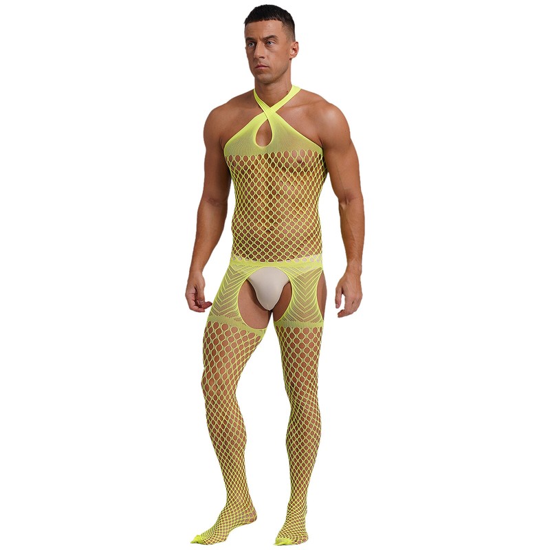 Full body hollow out and see-through design, fully shows off strong figure and male charm.