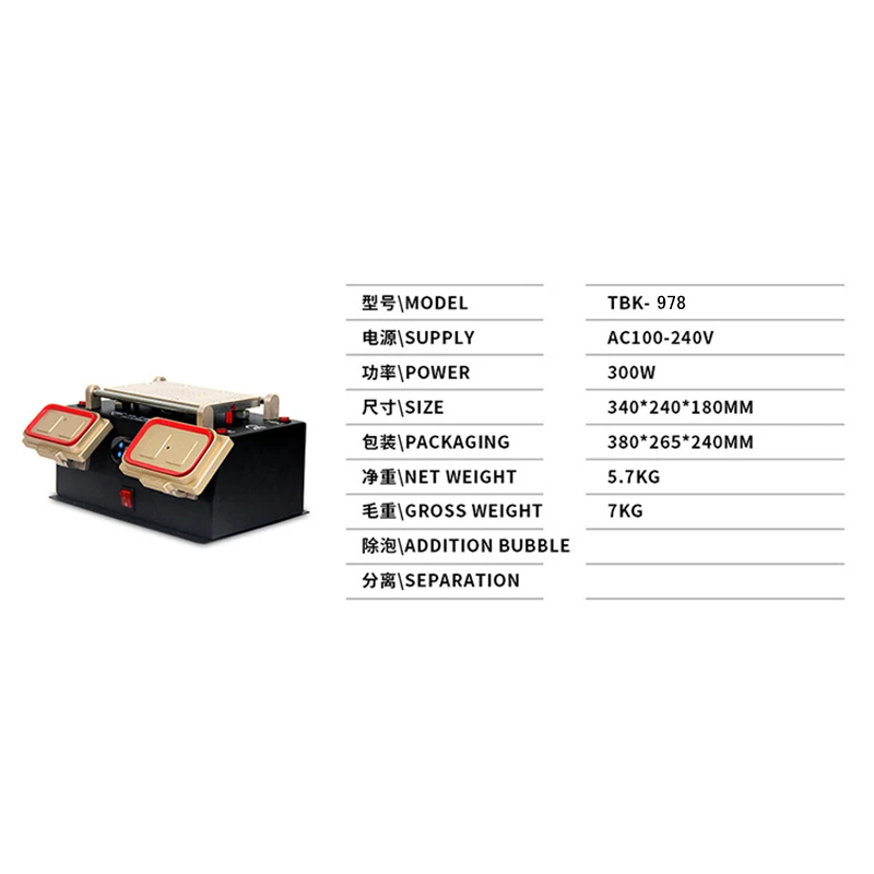 TBK 978 3in1 Vacuum LCD Separator / Preheater / Bezel Middle Frame Separator For iPhone Samsung Touch Screen Refurbish Repair Machine