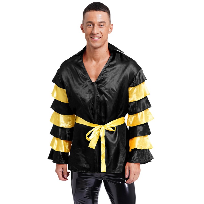Satiny shirt perfectly pairs with jeans, wide leg pants, lantern pants, harem pants and leather, lighting up the party atmosphere.