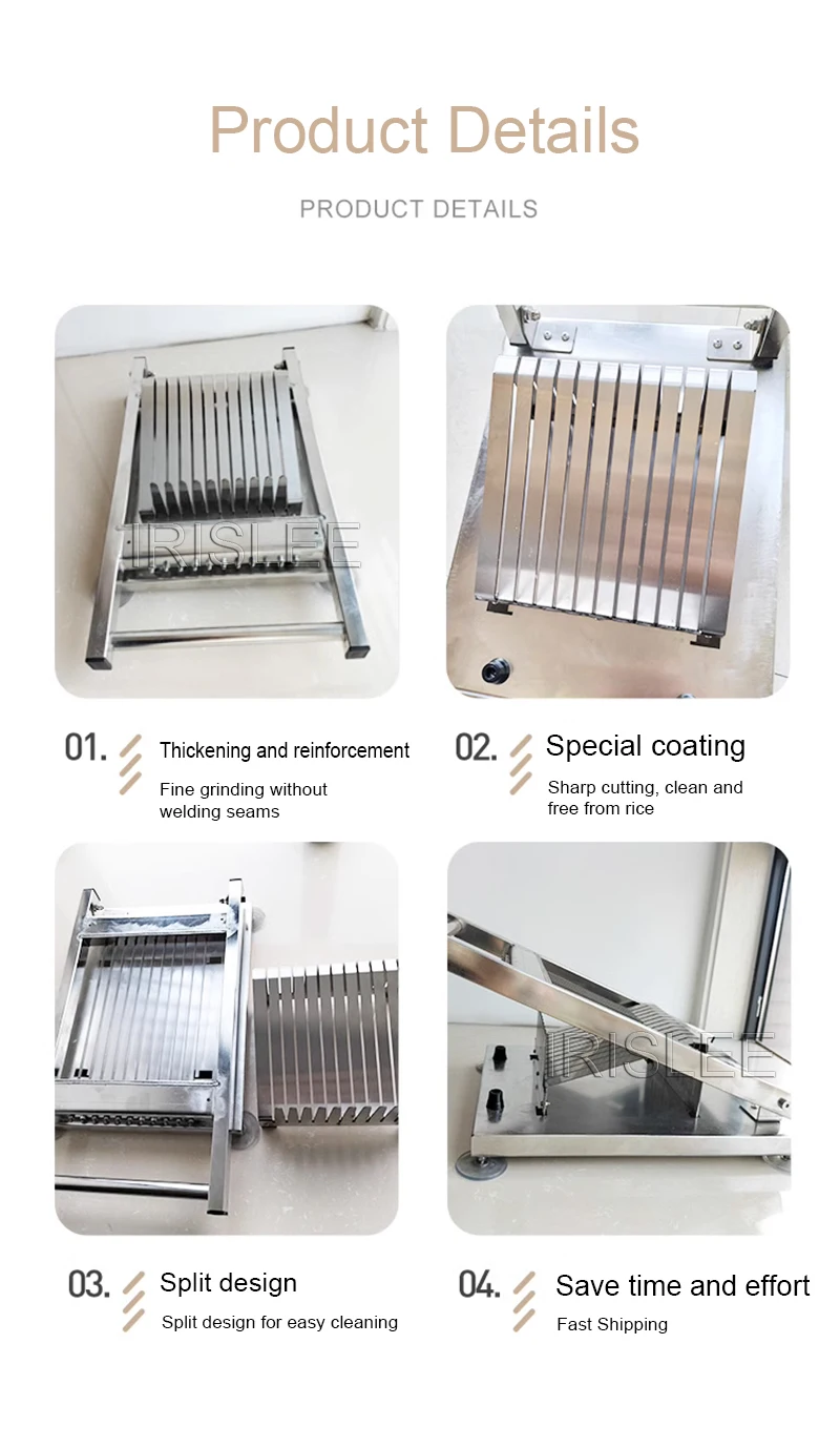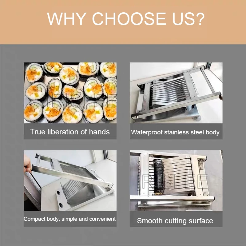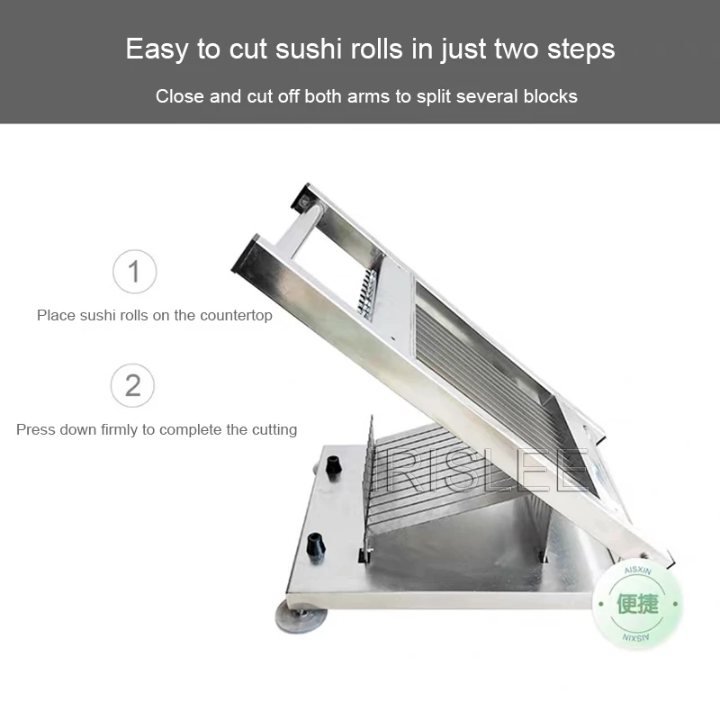 Name: Sushi cutter Material :Stainless steel Weight: 5kg Machine Size: 370*300*500mm Cutting thickness: 1.7cm/2cm/2.4cm