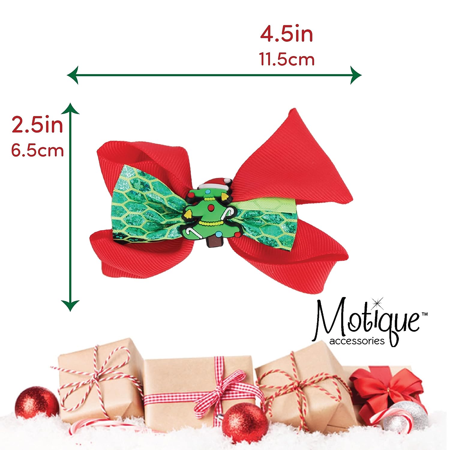 Beautiful 6.5 inch Hair Bow for girls. Stylish printed, layered, and full of design hair Bows will look great in any girl's hair this Christmas season. Great for the Holiday Season, for photoshoots, or for a stocking stuffer for some lucky little girl! Hair bow measures approximately 4-6.5 inches x 4 inches. 3 inch hair clip on the back to help it stay in place all day! One size Fits Child Female and Girls.