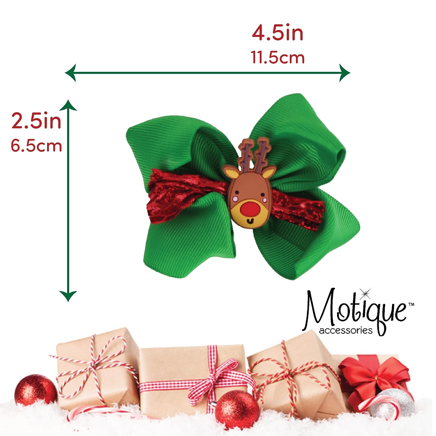 Beautiful 4-6 inch Hair Bow for girls. Stylish printed, layered, and full of design hair Bows will look great in any girl's hair this Christmas season. Great for the Holiday Season, for photoshoots, or for a stocking stuffer for some lucky little girl! 3 inch hair clip on the back to help it stay in place all day!