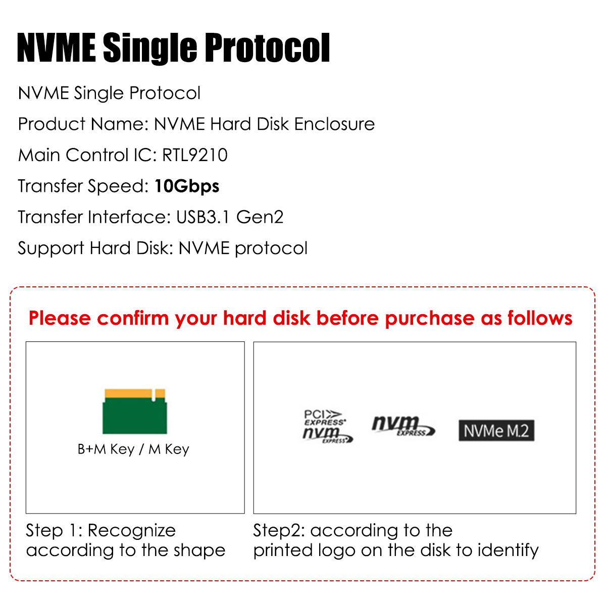 Applicable hard disk types: M Key, B&M Key.