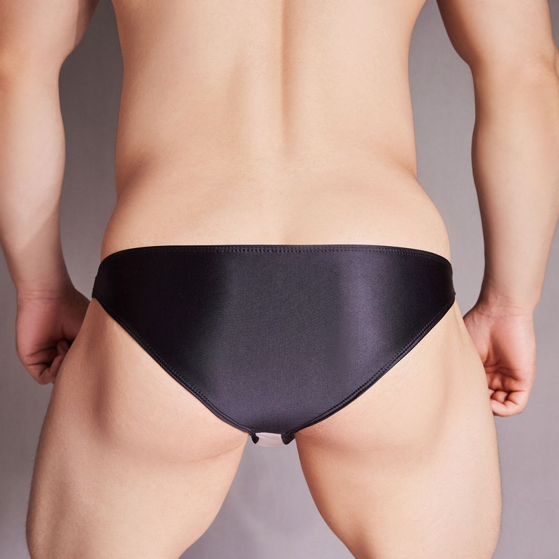 Designed with elastic waistband, low rise, contrast color, bulge pouch, glossy and thin fabric, this underwear is perfect for men.