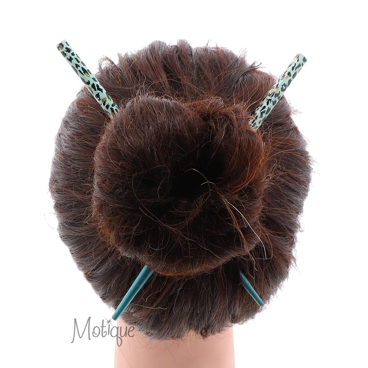 This is a lovely set of 2 Wooden Hair Sticks for your hair. Each stick measures 7.25 inches and has an animal print design at the top of the stick. Wear your hair in lots of different styles such as buns, twists & more with this hair accessory.