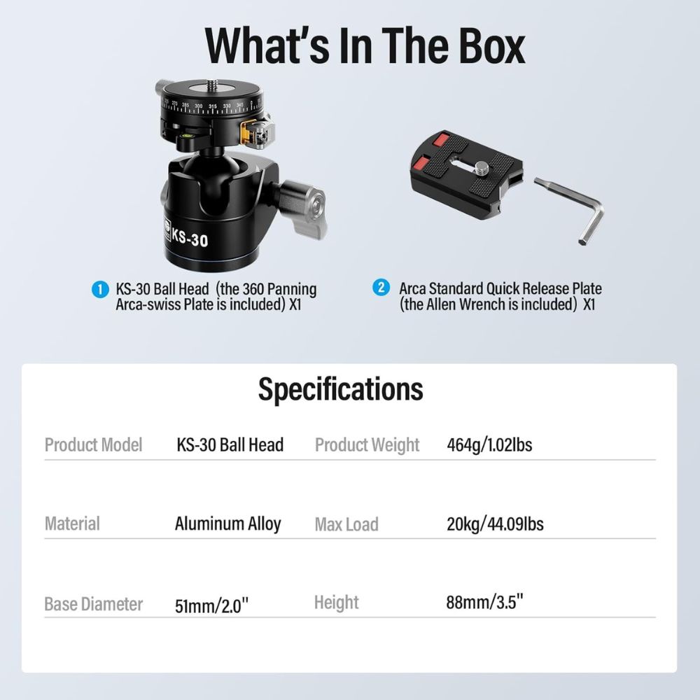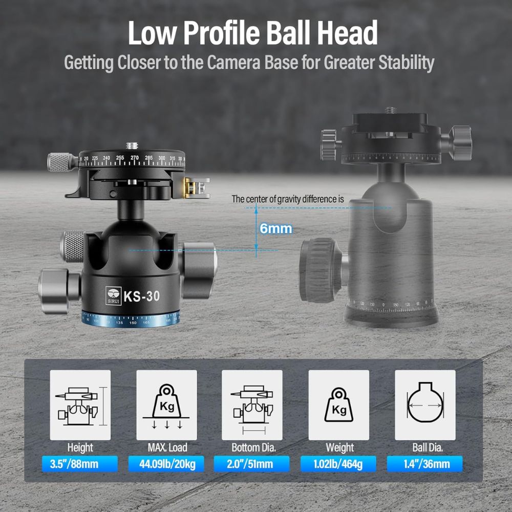 Sirui KS-30 Low Gravity QR Ball Head with Panning Arca-Type Plate