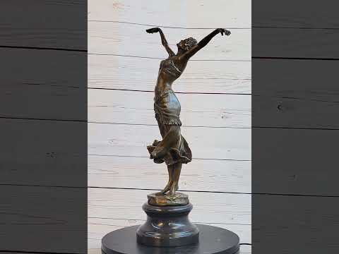 Presenting an extraordinary bronze sculpture that will leave you in a state of awe with its mesmerizing details and vibrant colors. This captivating piece showcases a figure radiating glory and joy, captivating viewers with its dynamic pose and stunning aesthetics. The sculpture portrays a graceful woman standing with her arms gracefully spread out over her head, capturing a moment of pure bliss and celebration. Her lively movements are accentuated by the positioning of her feet, standing on the balls of her feet as she sways her hips to the rhythm of the music.