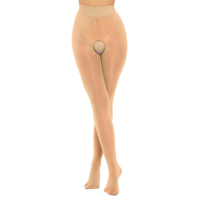 Sexy pantyhose designs with high waist for tummy control, seamless, open crotch and butt showing, footed, glossy fabric.