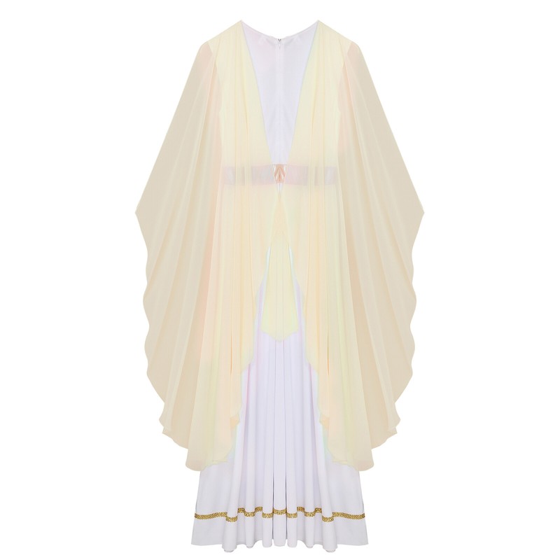 Womens Ancient Roman Godness Toga Egyptian Queen Costume Gold Trim Robe Dress